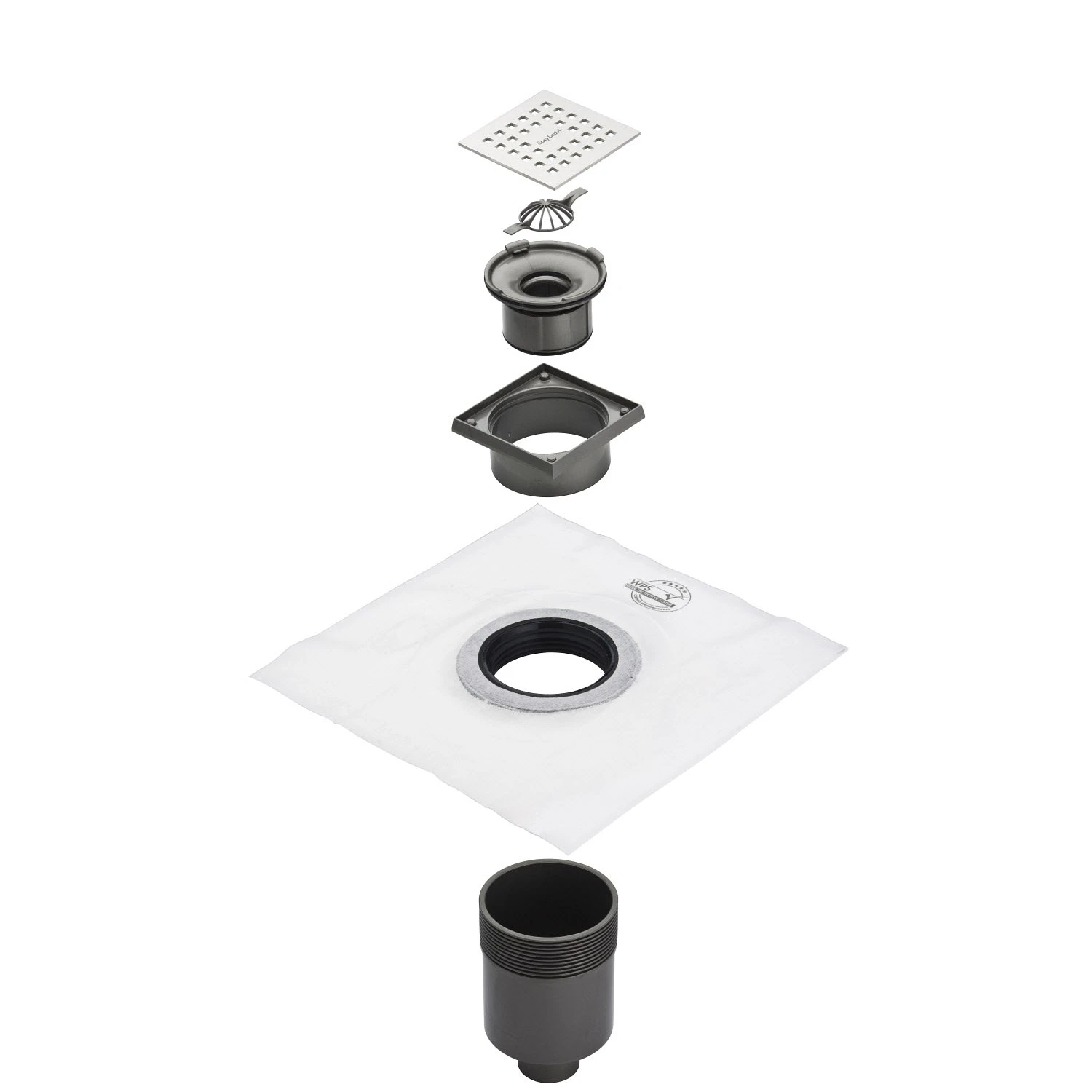 - WPS-Dichtmanschette mit integriertem Flansch (flexible Flansch-Technik: macht einen verstärkten Flansch um den Duschablauf überflüssig. Vorteil: 100 % wasserdicht, keine Druckbelastung auf dem Rand sowie perfekte Haftung)