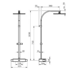HSK Shower-Set Modell RS 200 Thermostat Für Badewanne, Kopfbrause Superflach, Rund 25 Cm