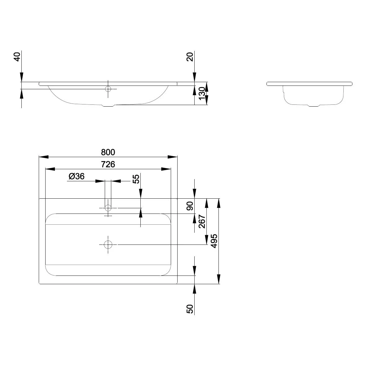 BetteOne Einbau-Waschtisch 80 x 49,5 cm mit Hahnloch und BetteGlasur® Plus