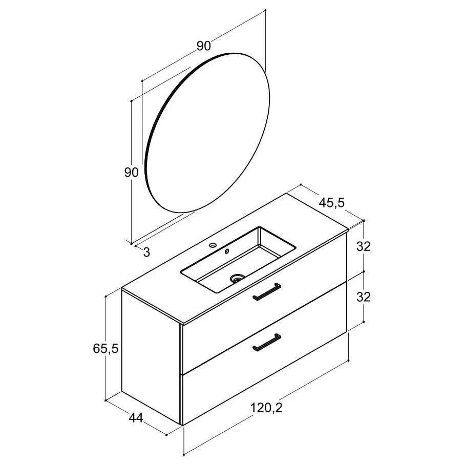 Dansani Play Möbelset inkl. Spiegel Ø 90 cm und Waschtischunterschrank mit 2 Schubladen, 120,2 cm