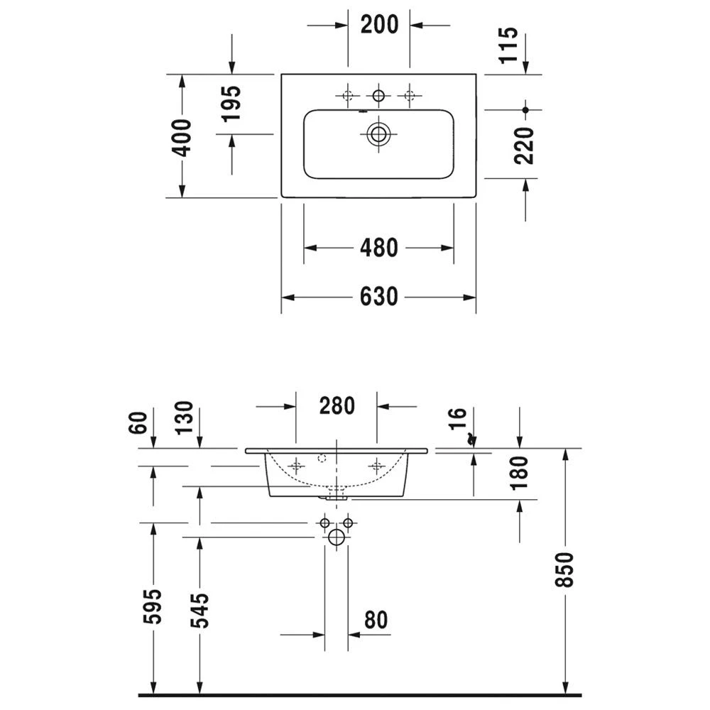 Duravit ME by Starck Möbelwaschtisch Compact mit 1 Hahnloch 63 x 40 cm