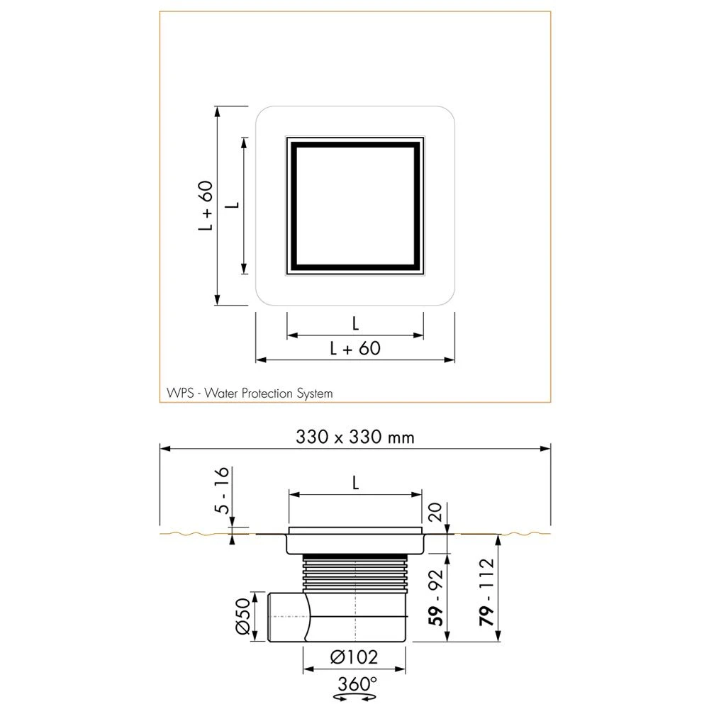 - Sperrwasserhöhe variabel von 5 bis 2,5 cm