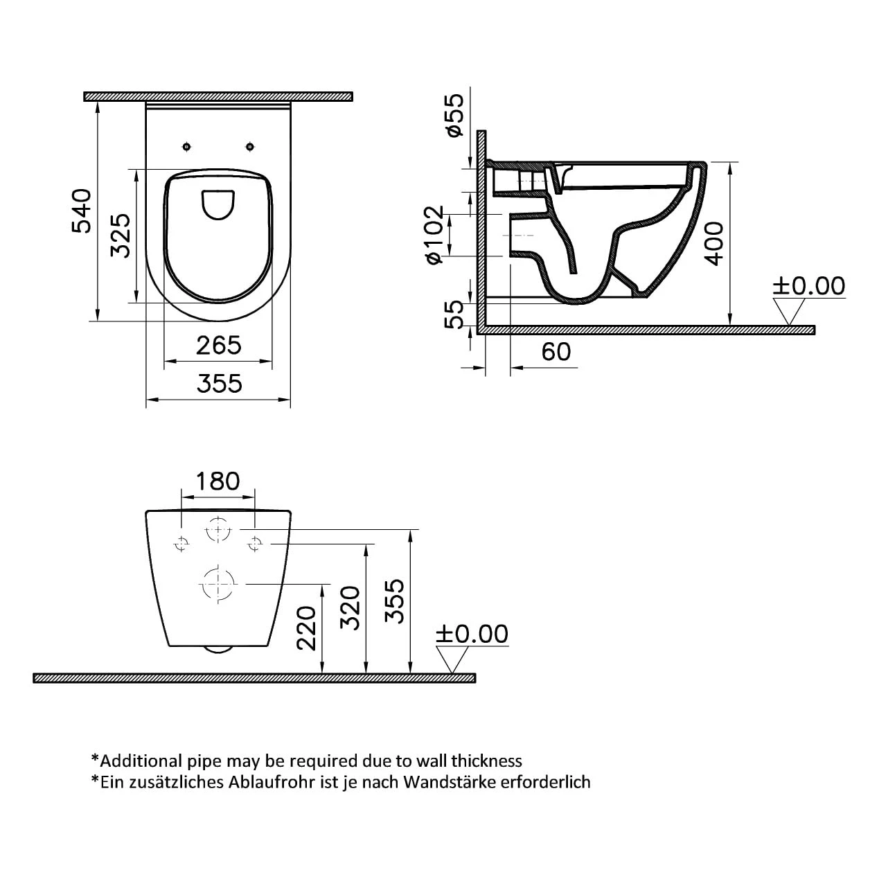 - zum Einbau in teilhohe oder raumhohe Vorwandinstallation bzw. in raumhohe Installationswand