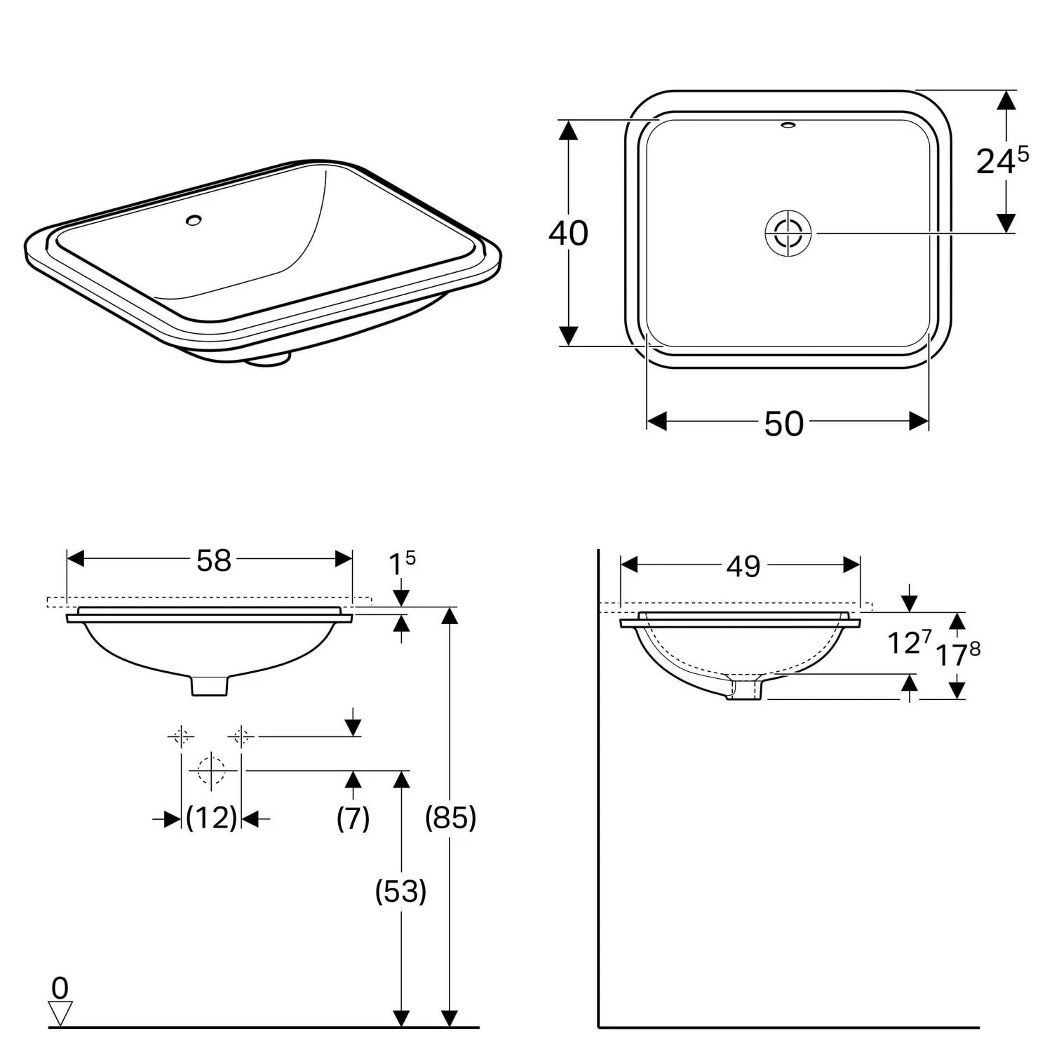 Geberit VariForm Unterbauwaschtisch 58 x 49 cm, rechteckig