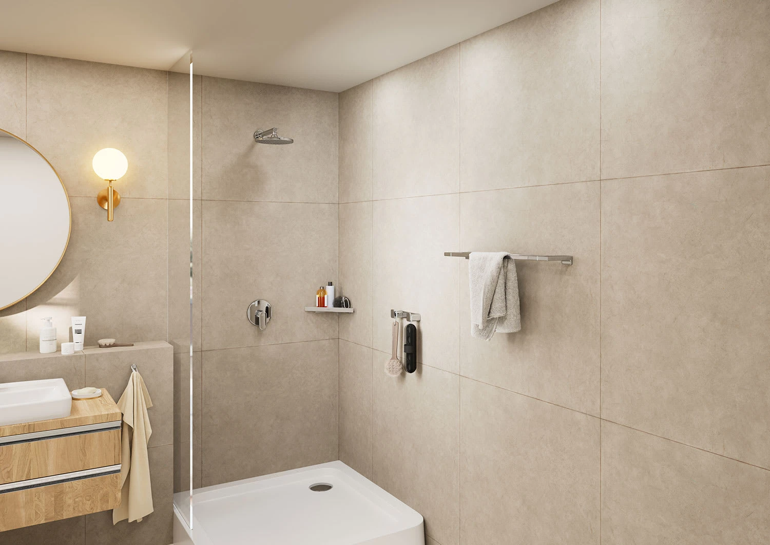 Ein Brausearm (Art. 27809000) oder Deckenanschluss (Art. 27804000 oder Art. 27805000) wird noch benötigt. Bitte mitbestellen.