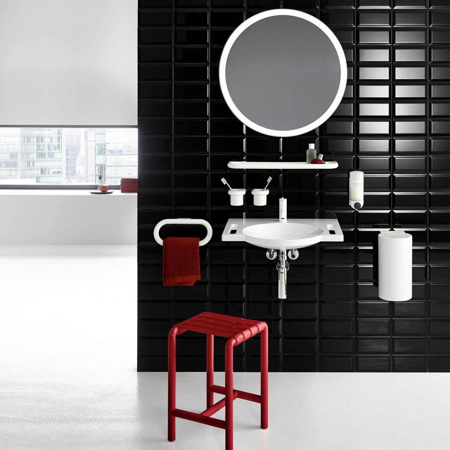 - integrierte Haltemöglichkeit seitlich, als Handtuchhalter nutzbar