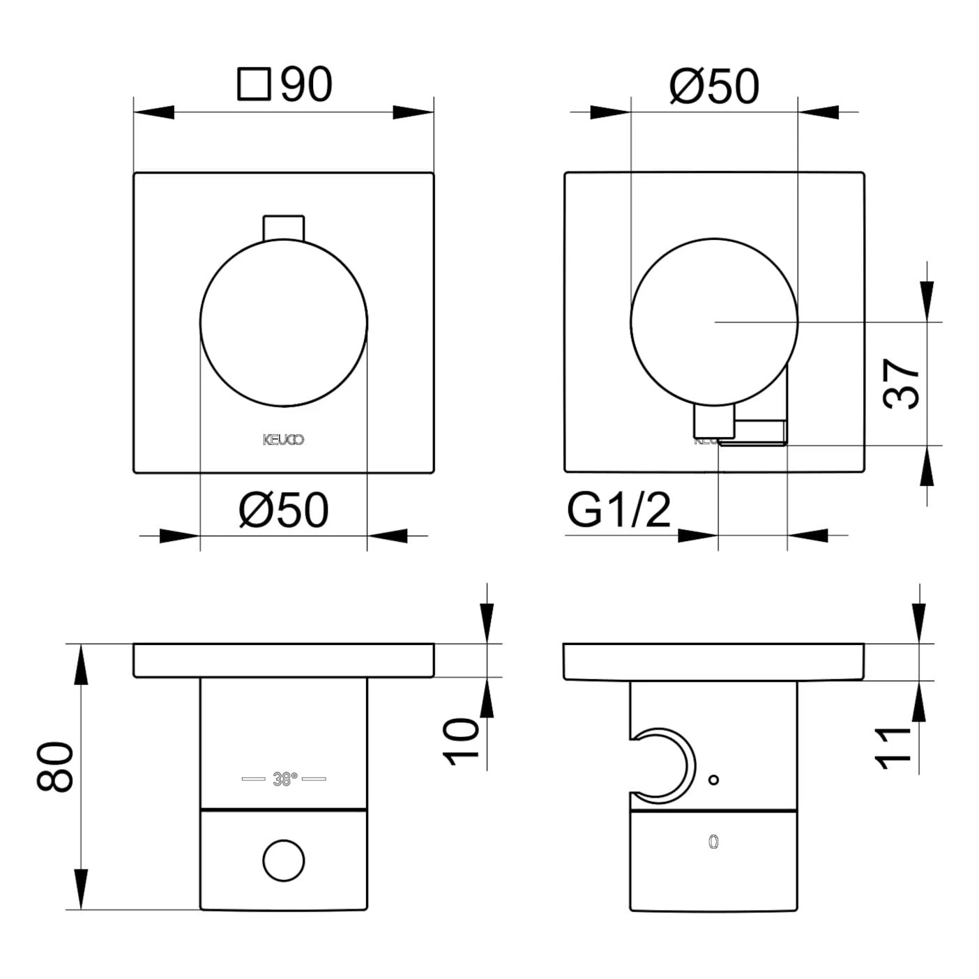 KEUCO Edition 11 Thermostatarmatur UP, 2-Wege mit Schlauchanschluss und Brausehalter