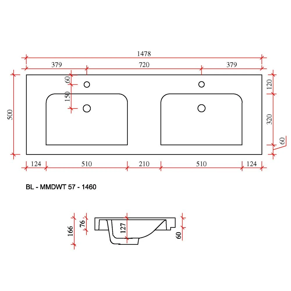 - mit 1 Hahnloch mittig je Beckenmulde