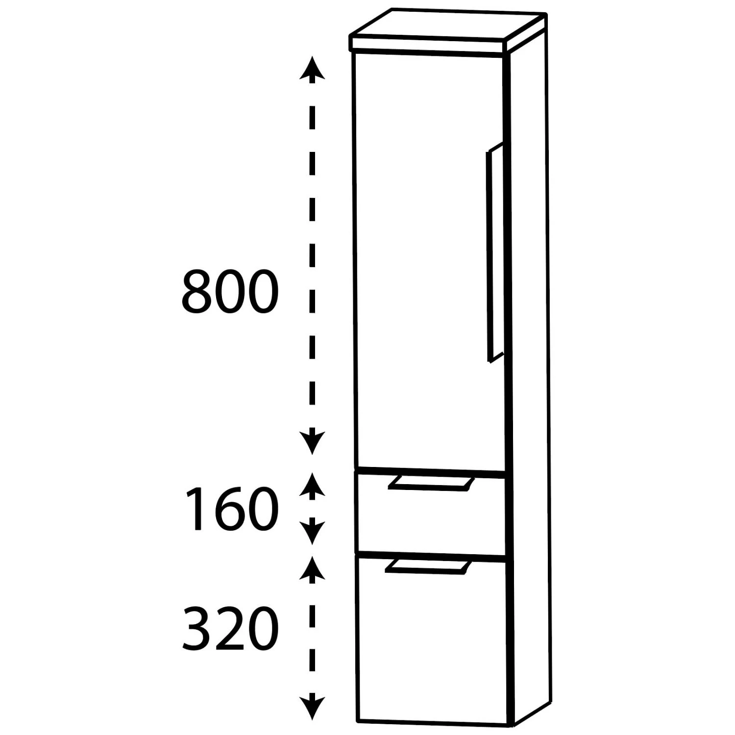 Puris Rounds Mittelschrank 40 x 30 x 130,8 cm mit 1 Auszug, 1 Schubkasten, 1 Tür, Anschlag links, Griff 329