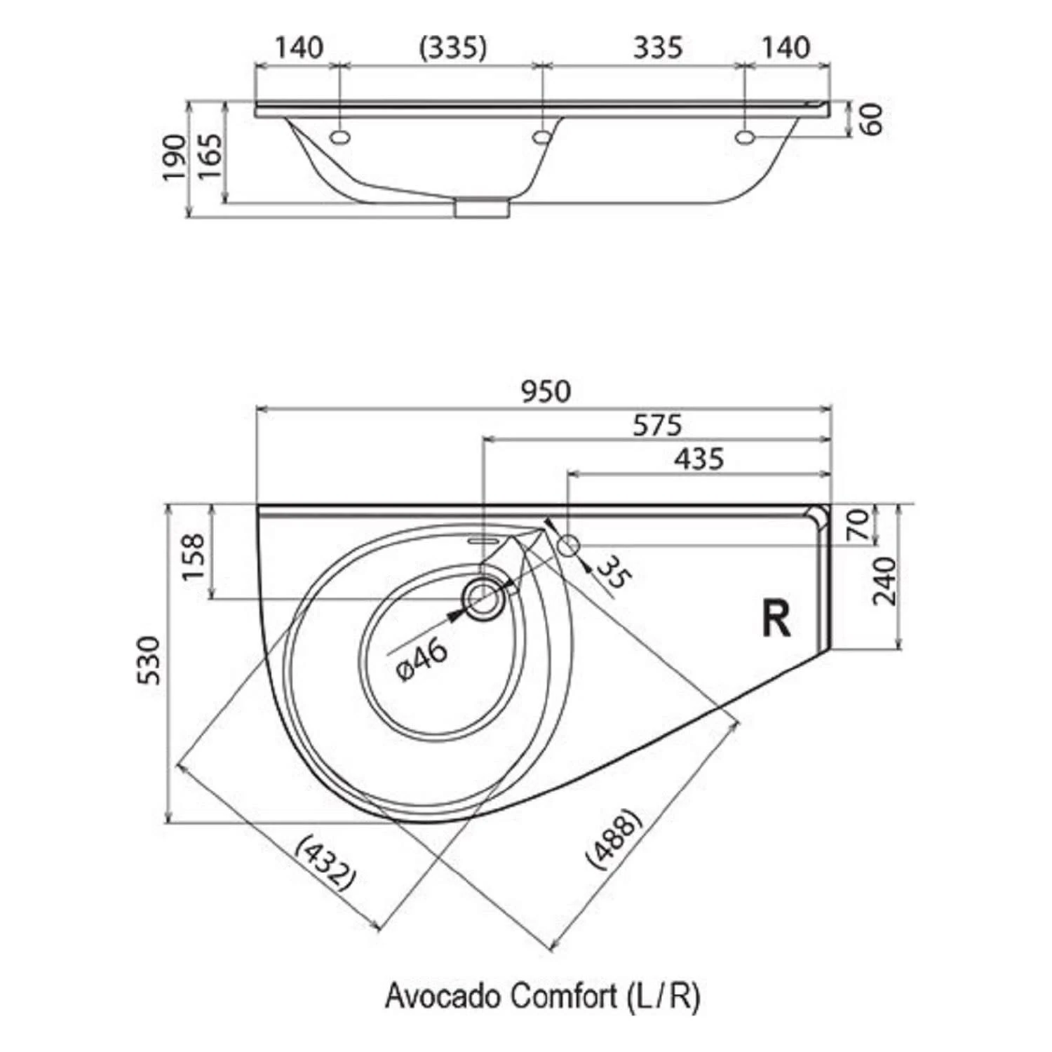 RAVAK Avocado Comfort Waschbecken 95 x 53 cm, links