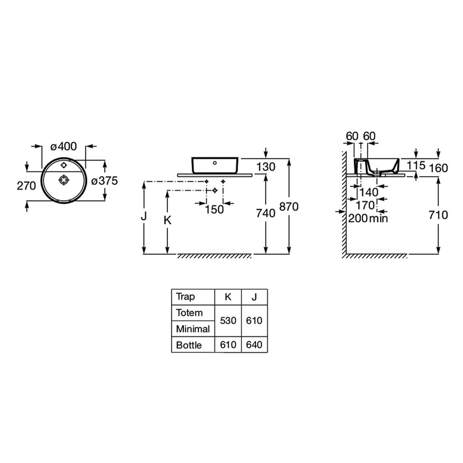 Roca The Gap Aufsatzwaschtisch, rund Ø 40 cm