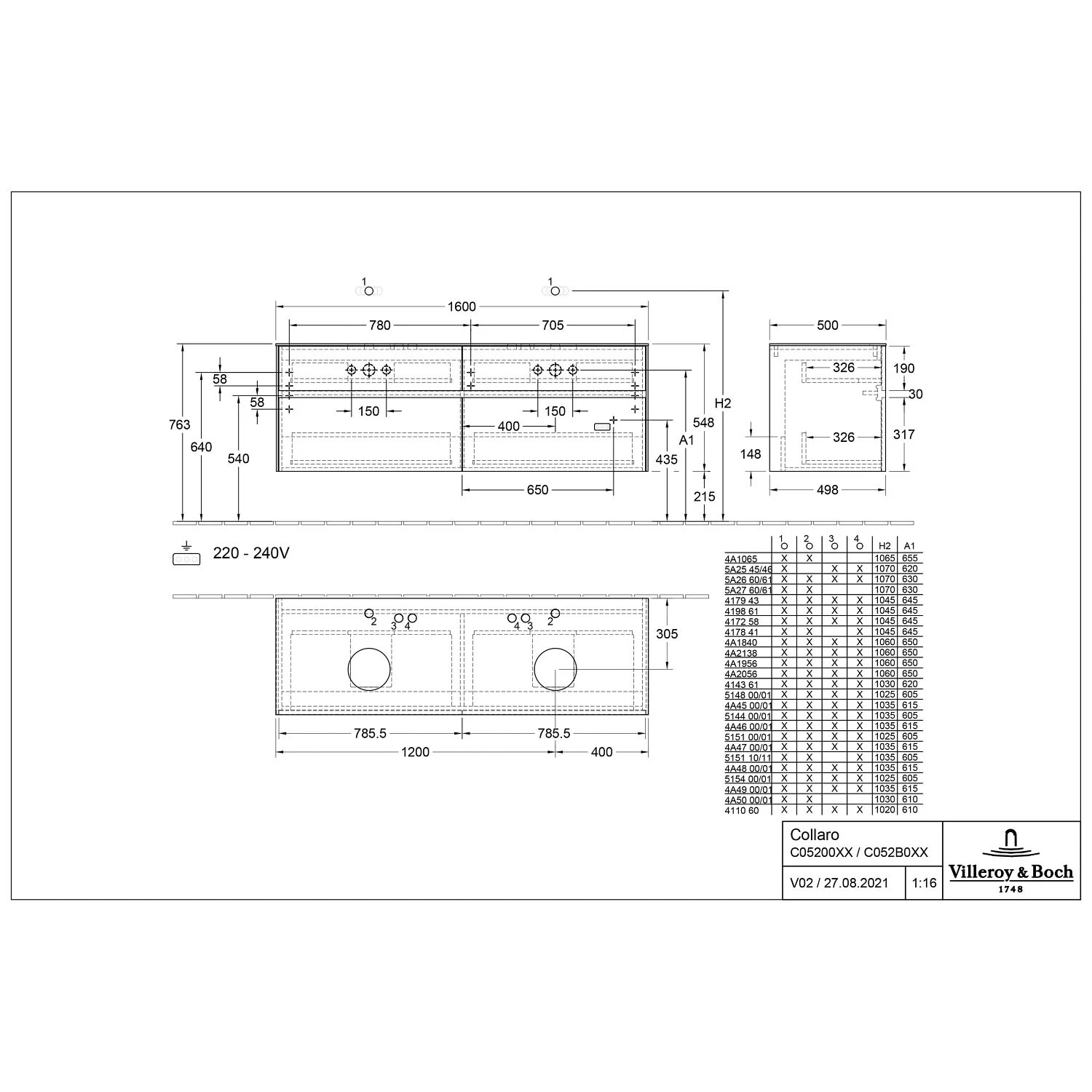 Villeroy & Boch Collaro Waschtischunterschrank 160 x 54,8 cm mit 4 Auszügen und LED Licht, für WT beidseitig