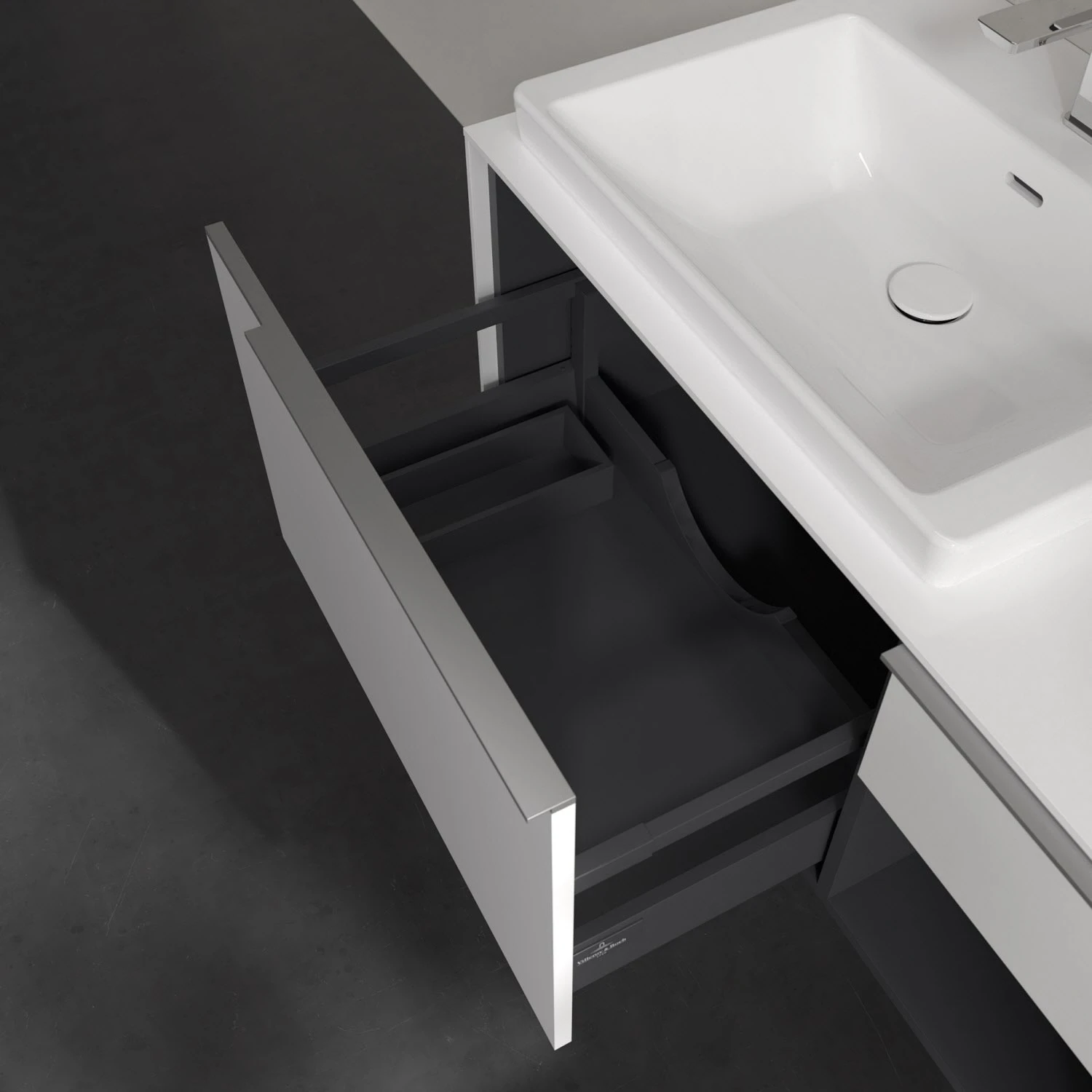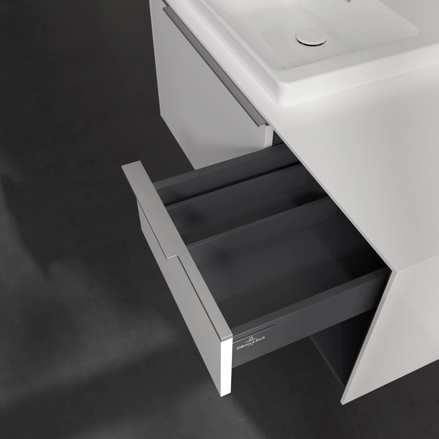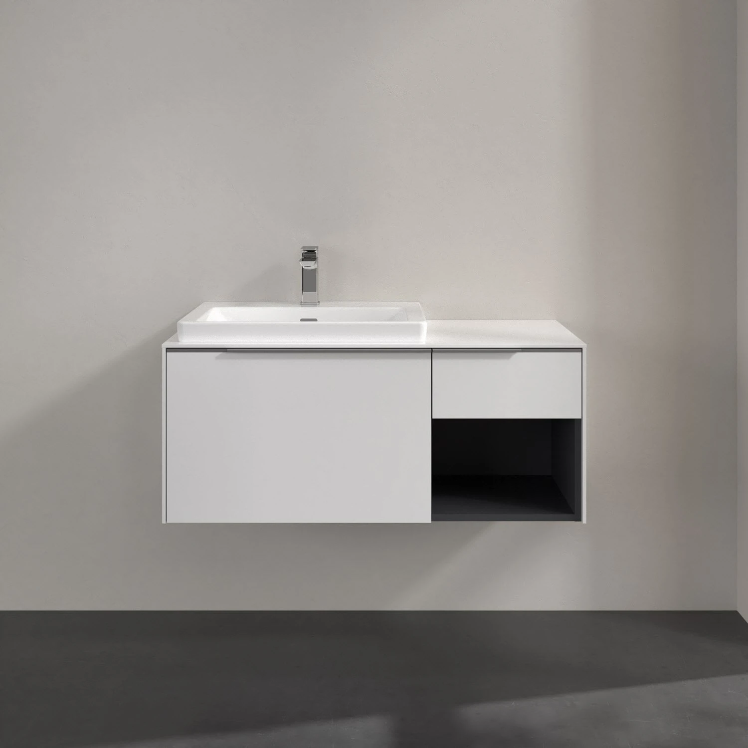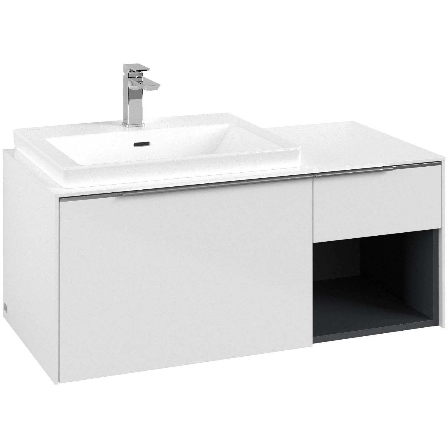 Villeroy & Boch Subway 3.0 Waschtischunterschrank 100,1 cm, 2 Auszüge + Regal rechts, Griffe glänzend, ohne LED-Licht