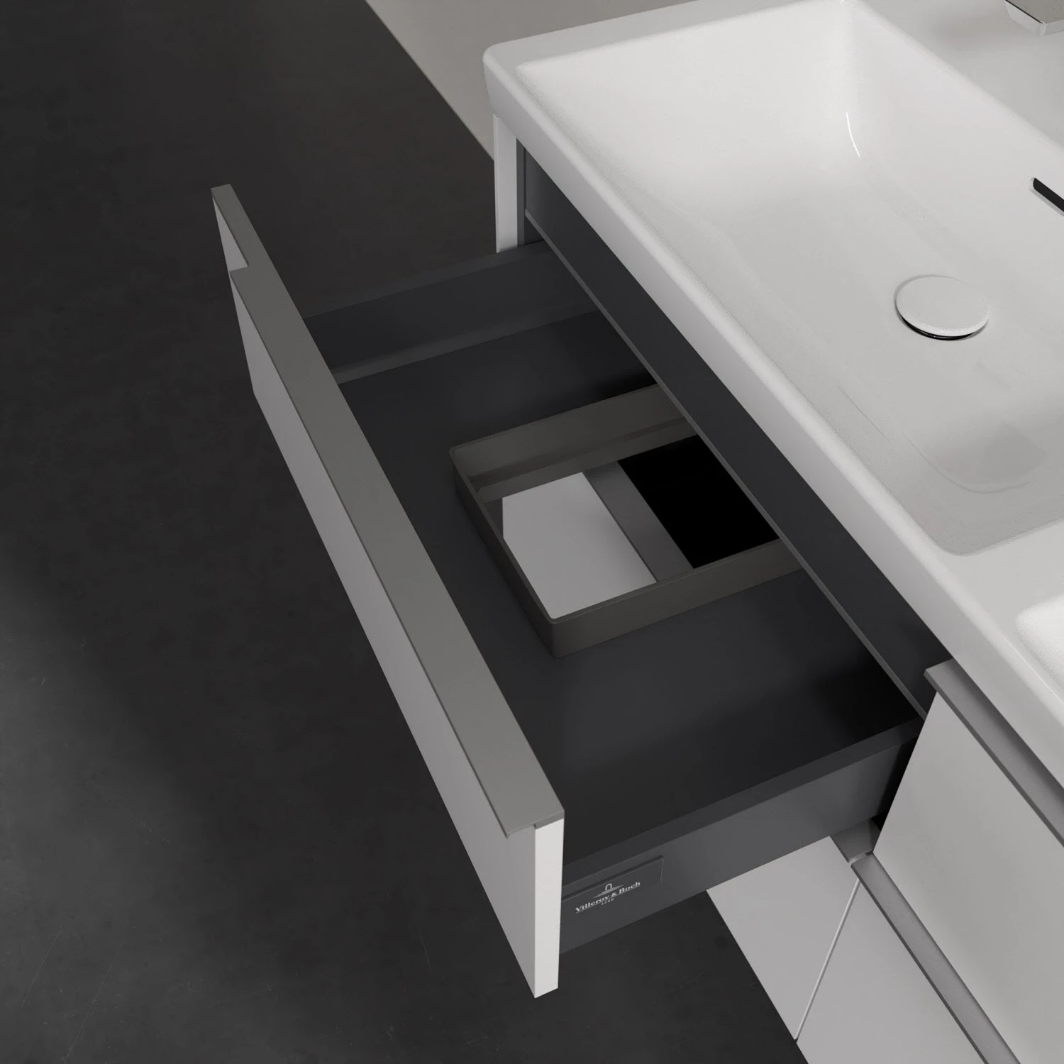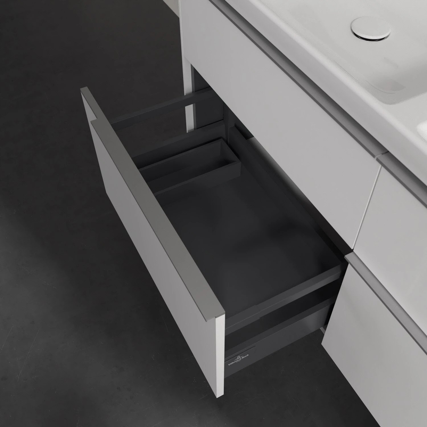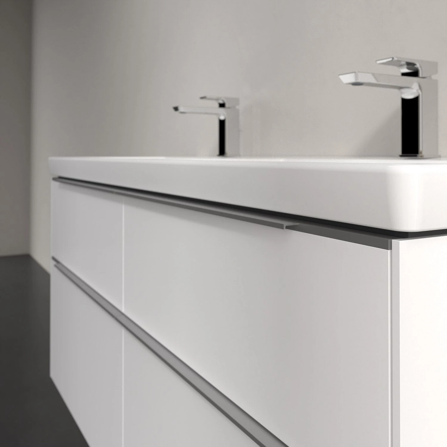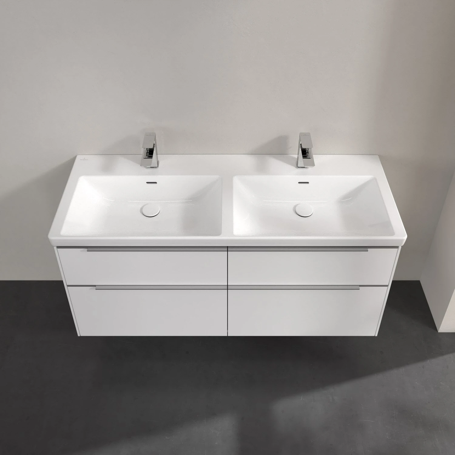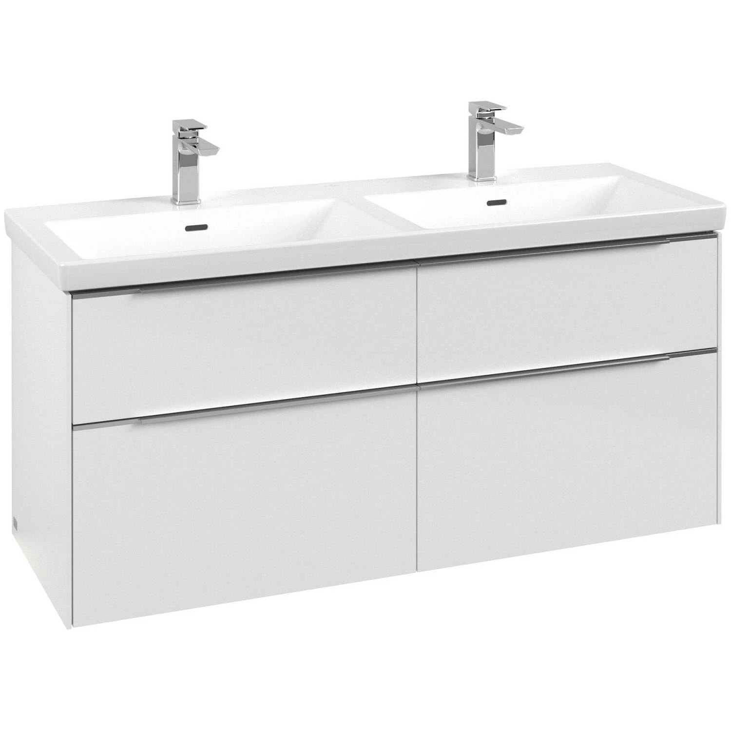 Villeroy & Boch Subway 3.0 Waschtischunterschrank 127,2 cm, 4 Auszüge, Griffe glänzend, mit LED-Licht, für Doppel-Waschtisch